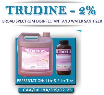 TRUDINE 236 controls Bacteria phytoplankton prozoan, fungi pathogens and parasites.TRUDINE 236 improves the health and stimulates immune system of animal.TRUDINE 236 won*t cause any irritation to the animal and keeps animal in good health.