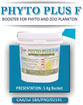 PHYTO PLUS F produces good quality and quantity of Plankton. PHYTO PLUS F avoids fixation of phosphates. PHYTO PLUS F performs both in low and high pH conditions. PHYTO PLUS F takes care the solubilisation of phosphates in the water column and as well as at the pond bottom.