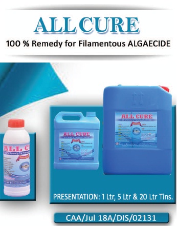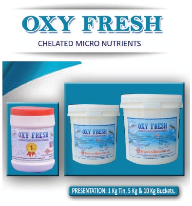 A perfect Disinfectant for both Fish and Prawn Culture. Thoroughly Dissolves in Water upto pond bottom level to eleminate other Pathogens also. Controls Bacteria, Viruses, Protozoa, Fungal Pathogens and Parasites. Widely used at Mortality Stage both in Fish and Prawn Ponds. Regulates Dino Flagellates.