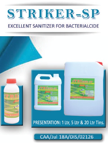 STRIKER - SP is a chemical frequently used as disinfectant and sterilizing agent against bacterialcide. STRIKER - SP Offers Strong Detergency & Rapid, Safe, Powerful Antimicrobial activity at low ppm. STRIKER — SP controls excess Mucus for Fish and cleans external para- sites.