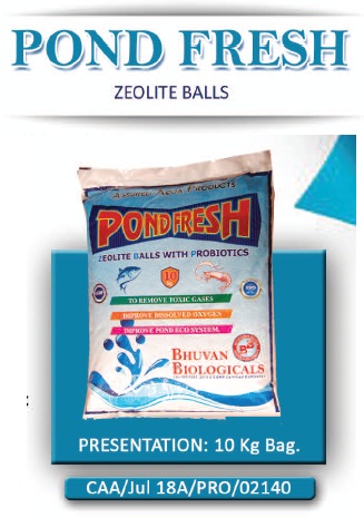 Absorbs Ammonia, Hydrogen Sulfide, Other Toxic Gases and suspended organic solids in the pond water. Improves Dissolved Oxygen (D.0) content in the pond water and regulates the pH of the water. Improves the pond water quality and maintains pollution free ecosystem.