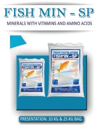 FISHMIN — SP consists of adequate colony forming units of Bacillus Subtilis, Bacillus Licheniformis, Bacillus Megaterium,in combination with essential Micro & Macro Minerals fortified with DL Methionine, L Lysine and Dry Yeast in a stable and a compatible base.