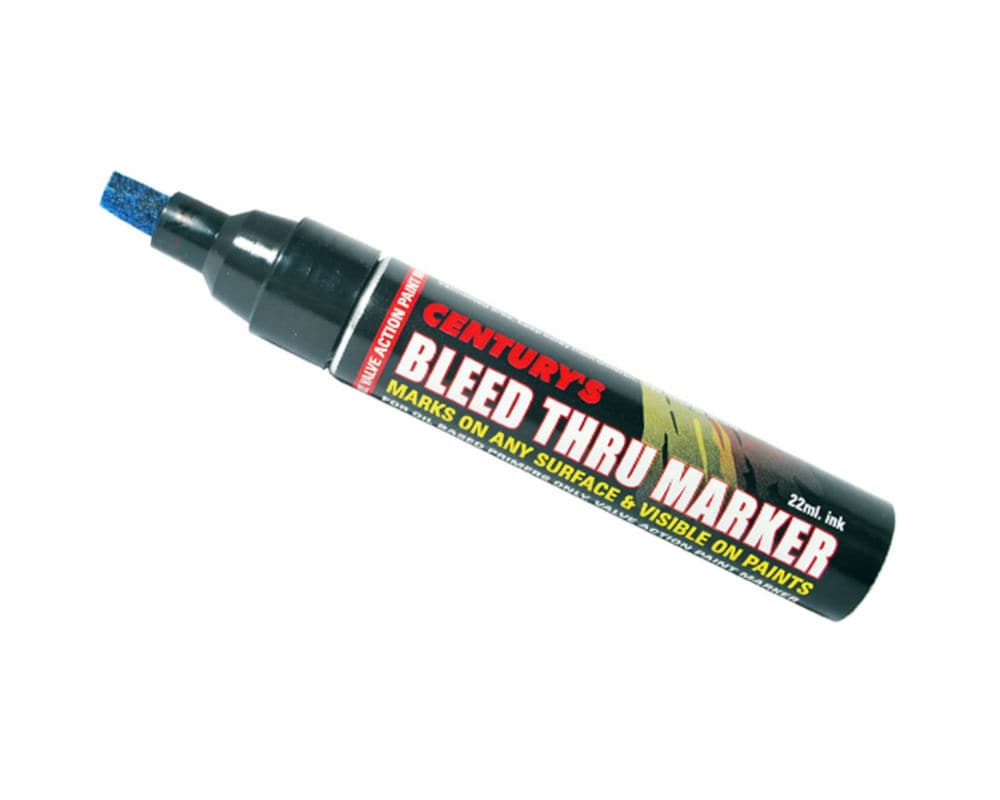 Century's Bleed Thru Marker is a permanent industrial grade valve action paint marker for construction purposes. Unique ink formulation allows marks to pass through and be visible even after painting on the surface that has been marked. It is made of an ink-filled hard aluminum body and valve-action felt tip for smooth ink flow. Works on all surfaces such as metals, concrete, iron, alloys, plastic, glass, etc. The marker is available in two types for oil based primers and water based primers. It is widely used in the construction, shipbuilding and bridge fabrication industries in metals and alloys for use in inspection, coding, design or assembly operations.