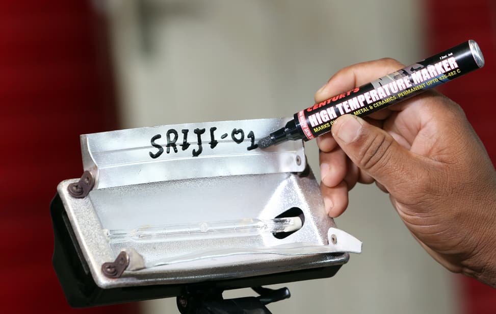 The Century Tex Marker® is an ink-filled aluminum folding writing device used to mark fabric samples for identification. It is used by textile factories and processing houses prior to gray fabric dyeing and finishing processes for identification, quality control, shrinkage, theft etc. The marking remains permanent, bright and opaque even after the dyeing and finishing processes are completed. It is widely used in the textile industry for dyeing, bleaching, hosiery, knitting, scrubbing and weaving processes.