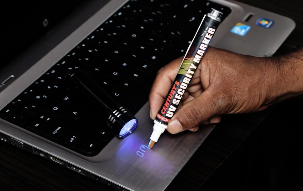 Century's UV Security Marker is a felt paint marker with applications in a wide range of industries including hospitality industry, hospitality industry, manufacturing, security, etc. Their markings are not visible in normal light and are only visible in black light or 'ultraviolet light'. It is made of an ink-filled hard aluminum body and valve-action felt tip for smooth ink flow. It is used in hotels and hospitals for quality controls and security markings. It is also used in manufacturing units, automobile industry, event industry, repair shops, laundry, clubs, army, etc. The marks made by the marker are permanent and weather resistant. Works on all porous and non-porous surfaces including metal, plastic, glass, ceramic, rubber...
