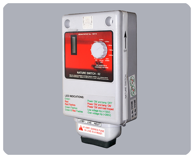 Our product offerings for intelligent switching ranges from stand alone sensor based switches to interactive web based solutions. We provide switches that will independently switch ON at dusk and switch OFF at dawn for applications like street lighting, and variants that can be turned OFF in the middle of the night with timer based logic for applications like sign boards for increased saving. In-built voltage protection to the load increases the lifetime of lamps being operated in turn reducing maintenance costs.