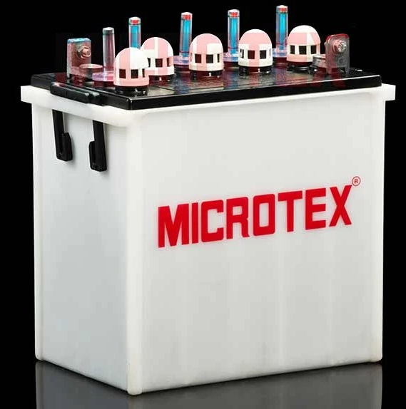 Microtex Semi-Traction Tubular Plate Lead Acid Batteries. Semi Traction batteries are designed to supply relatively small amount of DC current over long periods of hours up to 80% depth of discharge and on its subsequent charge. Specially designed lead alloys for positive and negative grids provide better current conductivity to the terminals with lower internal resistance. Presence of tin and grain refiners ensure a high-performance plate resistant to grid corrosion and offers higher efficiency in discharge.