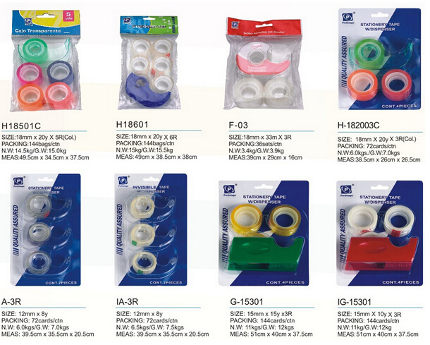 Stationery Tape is made with water-based acrylic adhesive coated on Bopp films.Applicable to general sealing,paper mending,fixing and splicing and gift wrapping.Ease-tear is more better and convenient to use without cutting machine at home,office and school.Available in variety of widths,lenghs and colours to meet your specail requirment.