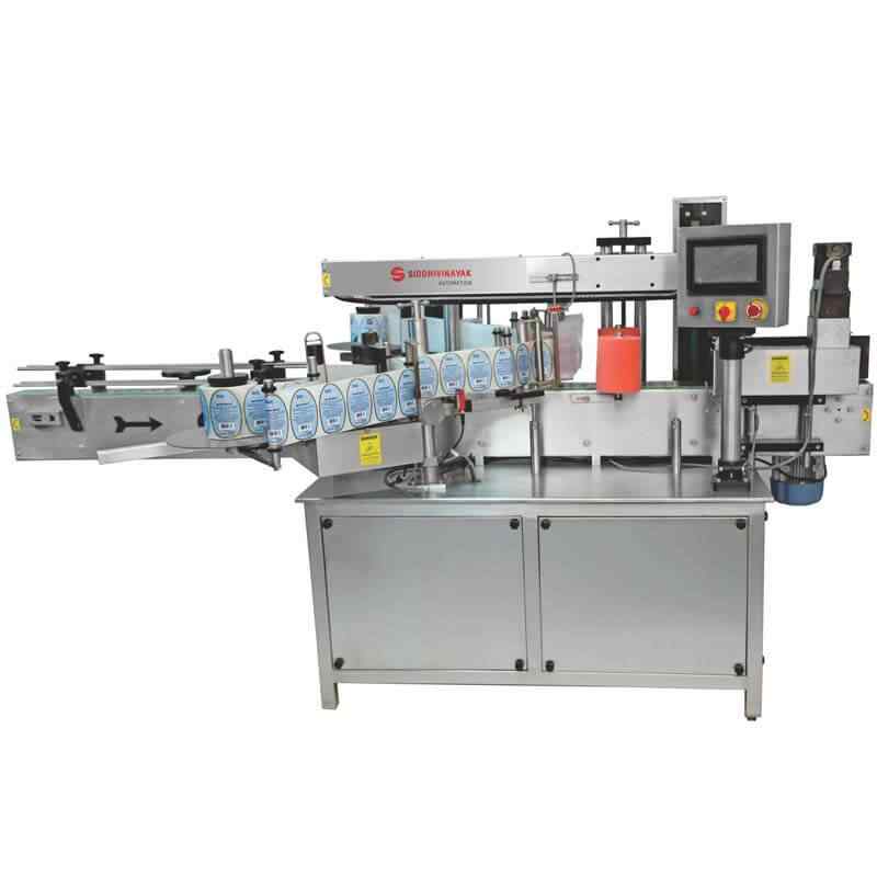Double Side Sticker Labeling Machine: SVADL100/200/300 is fully automatic double side sticker labeling machine. This model has been designed to apply one, two or more front/back self adhesive labels on different size of flat/round/elliptical shape containers.