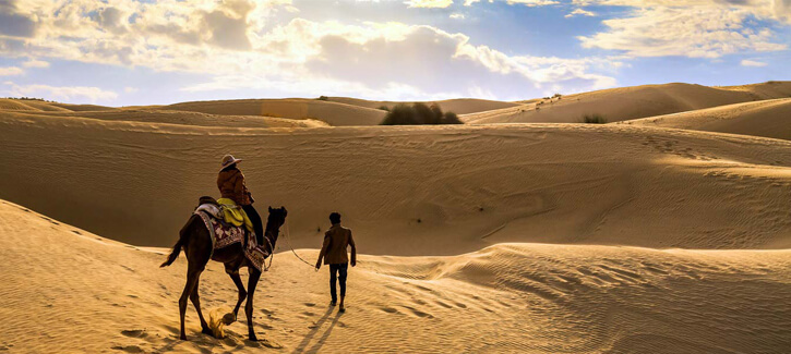4Jaisalmer : After breakfast commence visit of the magnificent JAISALMER FORT: this Fort situated on the Trikuta Hill was established by Maharawal Jaisal and is also known as “Sonar Quila” because it is made up of golden yellow sandstone. The fort is about 800 years old and is defended by 99 towers and has a large number of temples, residential areas and markets. The fort stands over 30 m over the city and is approached through Ganesh Pol, Suraj Pol, Bhoot Pol and Hawa Pol. HAVELIS: The town is famous for the large number of havelis; important among them includes the Nathmalji Ki Haveli, Salim Singh Ki Haveli, Patwon Ji Ki Haveli, and the Tazia Tower. GADSIAR LAKE: It is located near “Tillon Ki Gate” and is a major tourist attraction in Jaisalmer. It is a water conservation tank made in the 15th Century AD where one can find a large number of birds most of which migrate from the Bharatpur Bird Sanctuary located nearby.Evening drive to Sam, 40 minutes out of Jaisalmer, to witness the magnificent sunset of the mighty dunes and evening full of fun with traditional activities at Desert Camp.Overnight stay at Sam Sand Dunes at Winds Desert Camp, Jaisalmer.