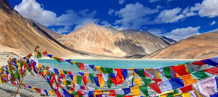 10Leh to Pangong Lake : After an early breakfast we leave for PangongLakeviaChangla Pass 5486 Mtrs. The long easy ascent takes you to Changla pass through its winding roads passing through Sakti Village. Stop at the Changla Pass for a quick photograph session and drive down to the village of Tangtse, where you can relax for a cup of tea. Leaving Tangtse for Pangong you pass through few small villages of Changthang and finally you can have a sudden view of the Pangong Lake situated at 14,000 feet (4,267 m). This famous blue brackish Lake of Pangong is 5/6 Kms wide and over 133 Kms long with half of its running the other side of the “Indo China Border”. One rarely feels so close to nature and environment and the scenery is unforgettable. After the success of 3 Idiots, this beautiful natural location has attracted more tourists from all over the world. Upon arrival we check in at our Camp Near Pangong lake. Dinner & Overnight at the Camp.