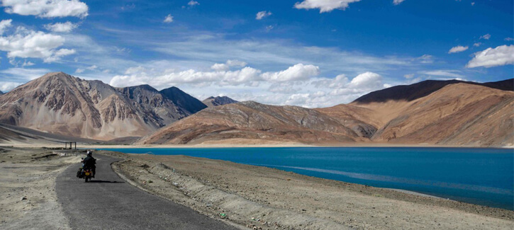 8Leh to Pangong Lake : After an early breakfast we leave for PangongLakeviaChangla Pass 5486 Mtrs. The long easy ascent takes you to Changla pass through its winding roads passing through Sakti Village. Stop at the Changla Pass for a quick photograph session and drive down to the village of Tangtse, where you can relax for a cup of tea. Leaving Tangtse for Pangong you pass through few small villages of Changthang and finally you can have a sudden view of the Pangong Lake situated at 14,000 feet (4,267 m). This famous blue brackish Lake of Pangong is 5/6 Kms wide and over 133 Kms long with half of its running the other side of the “Indo China Border”. One rarely feels so close to nature and environment and the scenery is unforgettable. After the success of 3 Idiots, this beautiful natural location has attracted more tourists from all over the world. Upon arrival we check in at our Camp Near Pangong lake. Dinner & Overnight at the Camp.