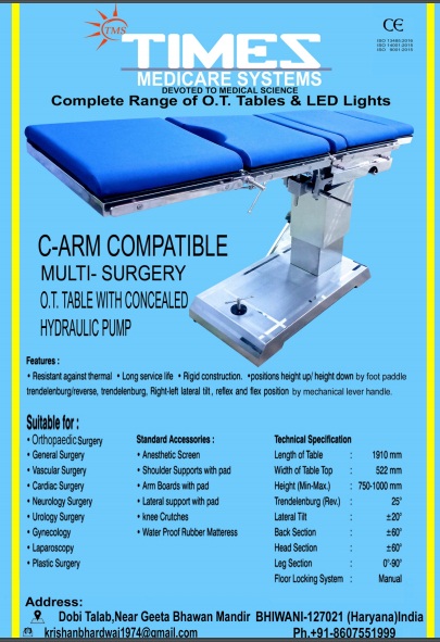 C-ARM COMPATIBLE MULTI-SURGERY O.T. TABLE WITH CONCEALED HYDRAULIC PUMP