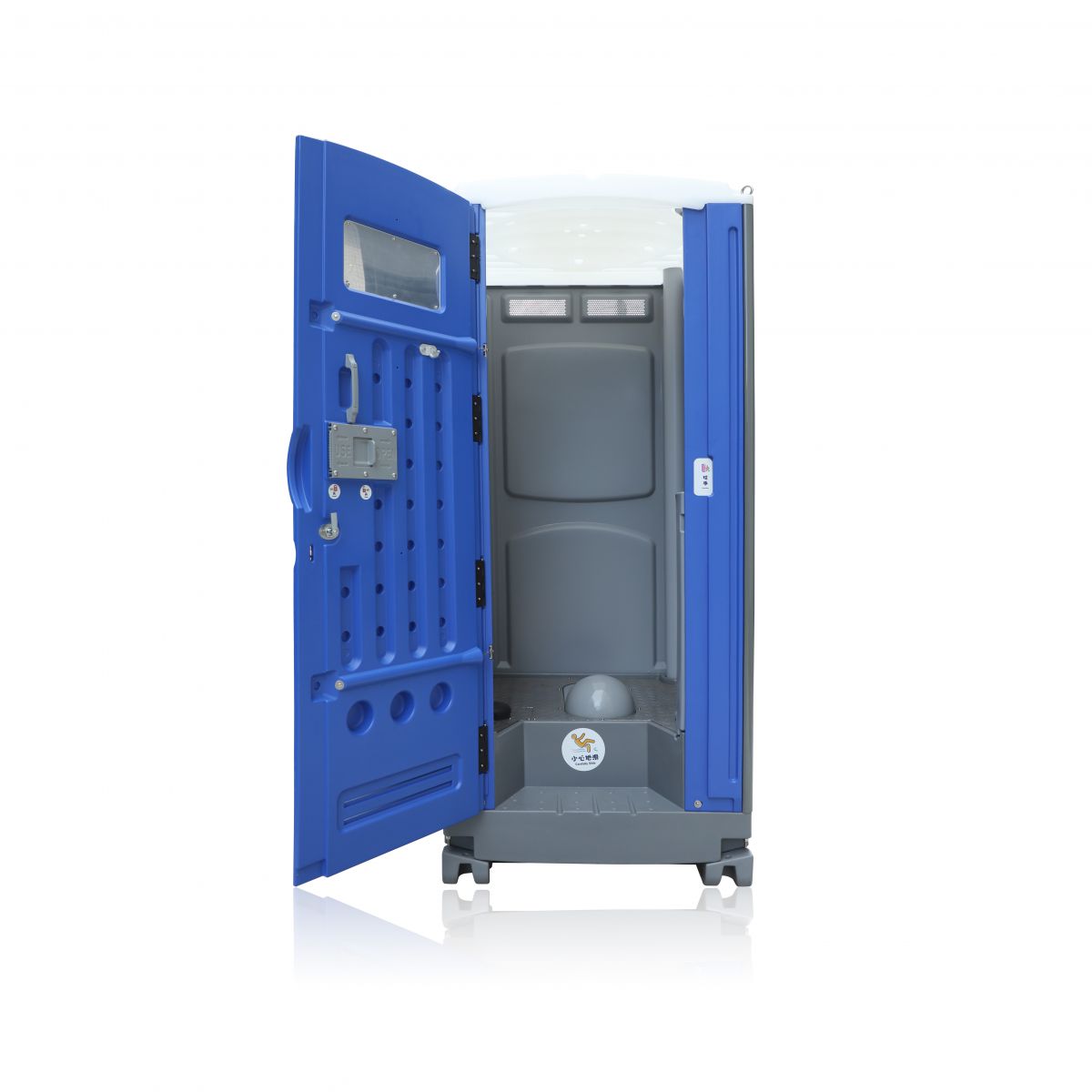 TPT-L04 has three tanks: flush tank, waste tank and hand wash sink. Unique structure of the base combines a flush tank and a waste tank to save space.The water after washing hands can be stored in the flush tank. It realizes water recycling use and reduces the sewage discharge greatly. The smaller-sized toilet is light enough to be easily carried by two people. Very easy to be installed, 2 people can finish one unit within 30 minutes. With vacuum forming, the roof is flexible enough to prevent damage from outside force. With UV- resistance, the toilet can keep its original appearance and function after many years.