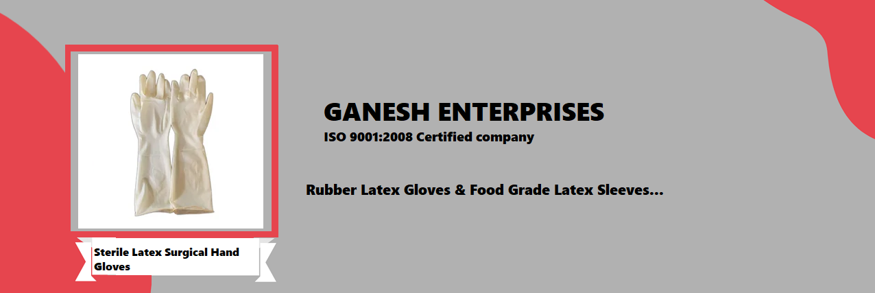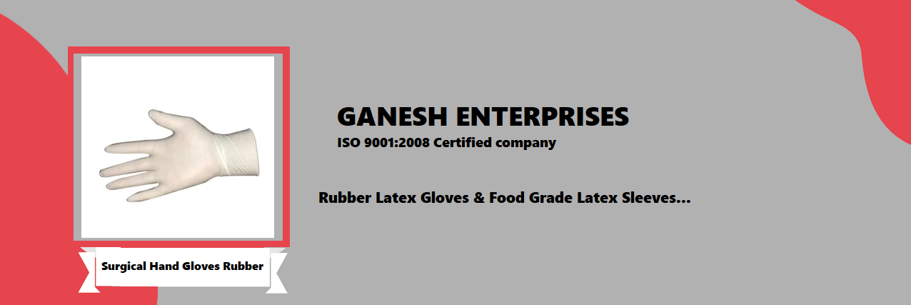 Maintaining a high degree of quality is crucial for a business to keep clients. Greatly acknowledged in the markets for being a prime manufacturer of All Types of Rubber Latex Gloves & Food Grade Latex Sleeves, we, GANESH ENTERPRISES.,an ISO 9001:2008 Certified company are a business firm that works with confidence and never delivers bad quality products. We place only the highest calibre products in our portfolio and place a strong emphasis on keeping range of products. Our collection of diverse products is made with A grade rubber, latex, and many other products. The aforementioned products are offered by us in standard sizes so that clients can select their desired products.For clients to take benefit of the cost savings we are...Read more