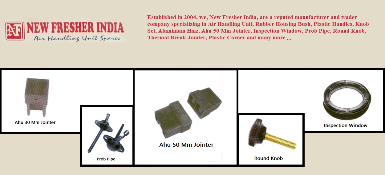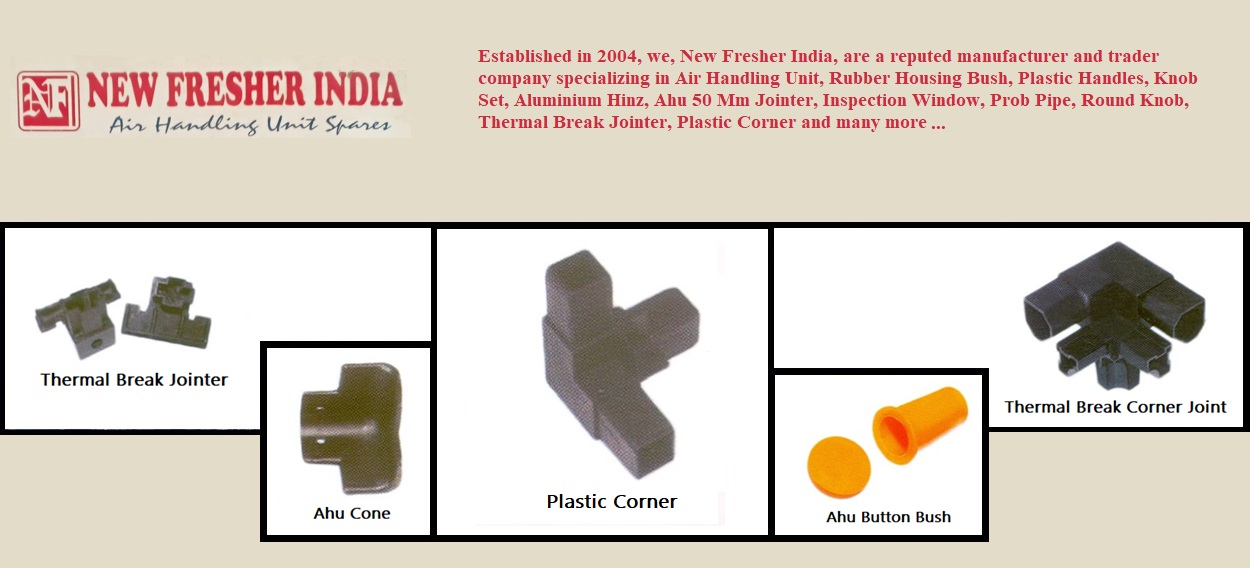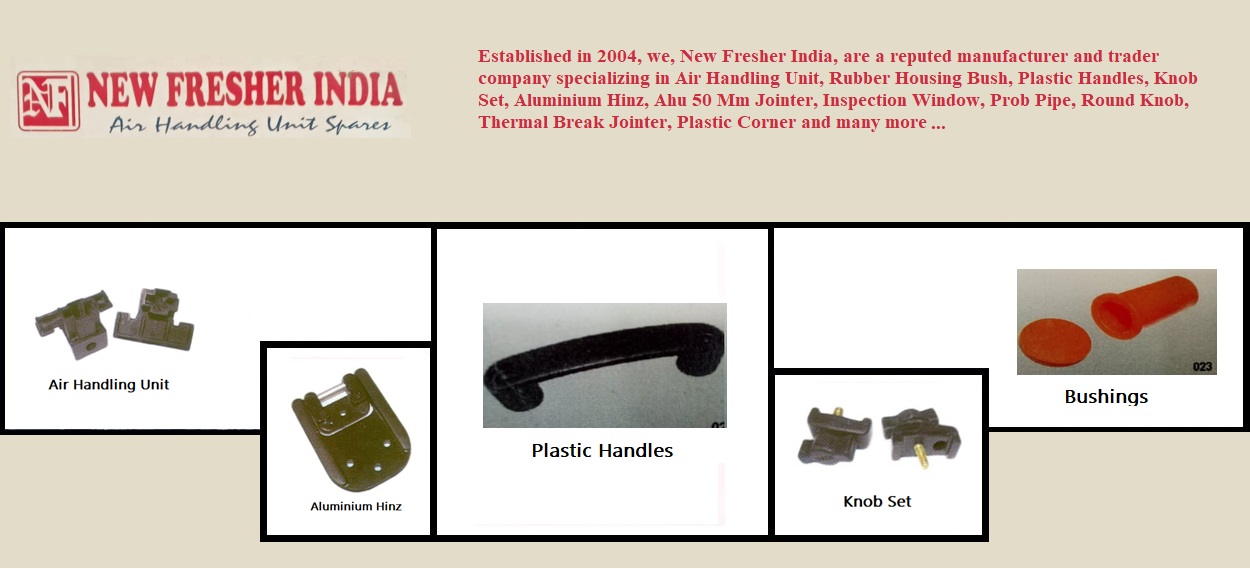 Established in 2004, we, New Fresher India, are a reputed manufacturer and trader company specializing in Air Handling Unit, Rubber Housing Bush, Plastic Handles, Knob Set, Aluminium Hinz, Ahu 50 Mm Jointer, Inspection Window, Prob Pipe, Round Knob, Thermal Break Jointer, Plastic Corner and many more, which are widely acknowledge for their accurate dimension, immense corrosion resistance, smooth edges, rust resistance and glossy surface finishing. Due to these matchless features, our products are in huge demand in the market.
