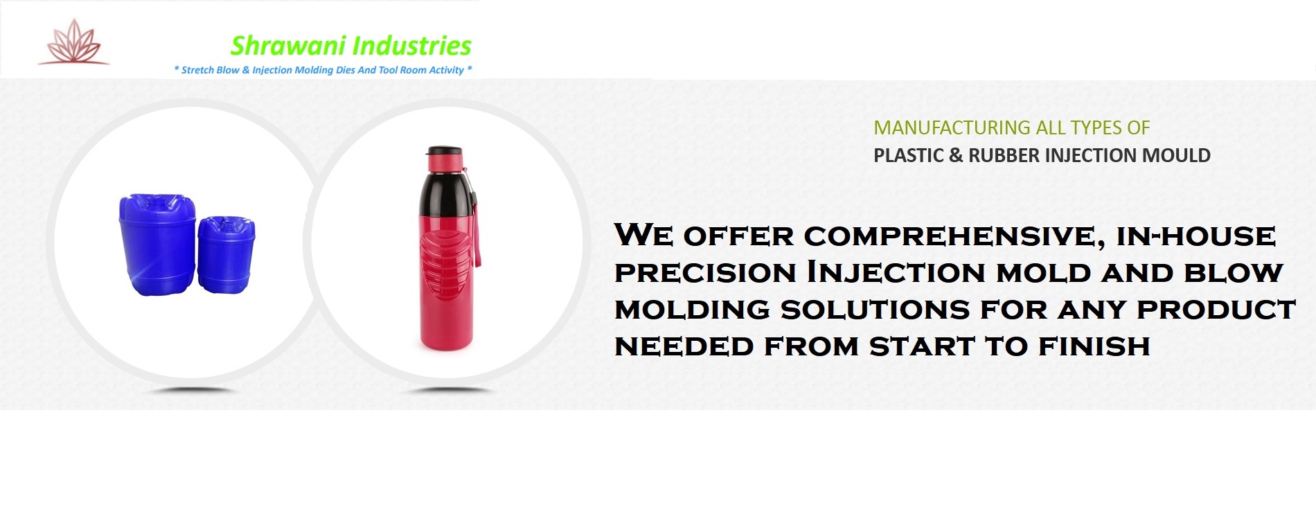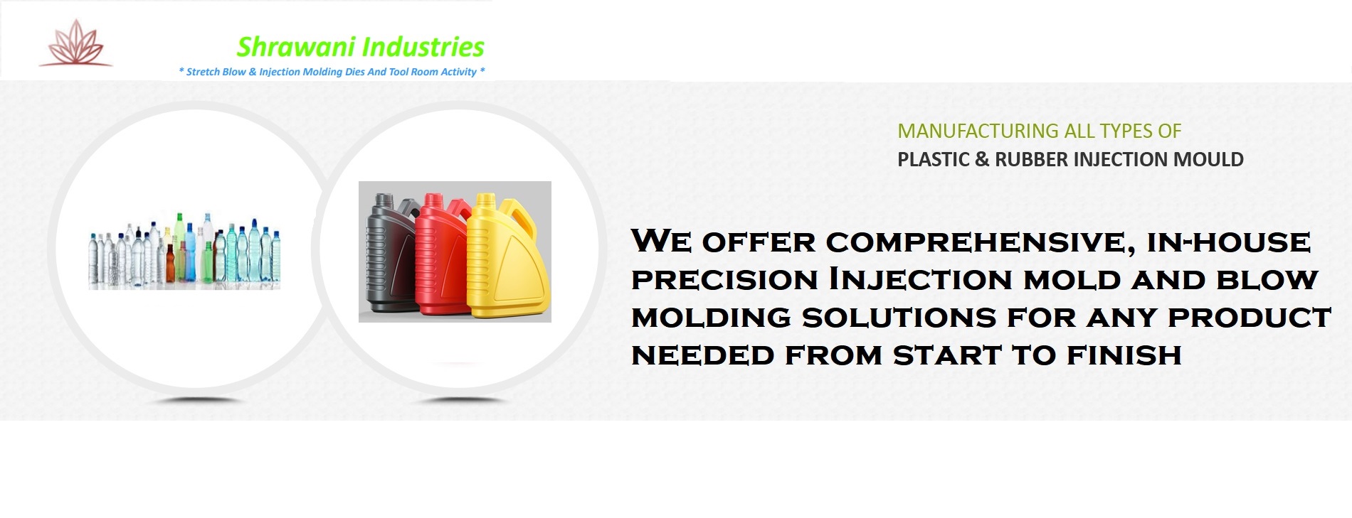 Keeping stride with the growing requirements Mr. Ravindra Jadhav (Director) has been taking the company to another level by making the customers believe that 'Quality is the central focus of our company Shrawani Industries which is delivering state of art Injection Molding and Stretch Blow molding dies and components. We understand how the quality of the mold is important for the Injection mold and blow mold for fast changeovers and high production runs. We have a good customer base from the packaging as well as commercial and industrial segments. Various applications like automobile, industrials, distilled water, personnel care, house hold chemicals / cleaners, dairy, foods & beverages, oils & lubricants, medical / pharmaceutical, industrial chemicals, agriculture, etc are...Read more