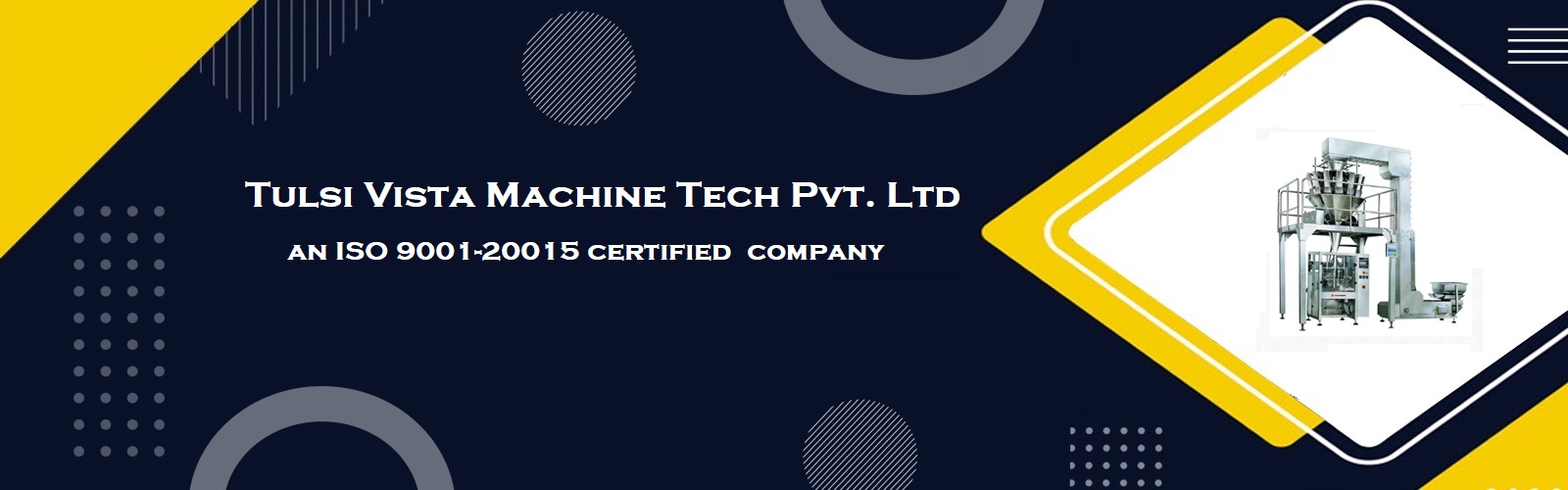 Tulsi Vista Machine Tech Pvt. Ltd.,​ A Venture of Tulsi Agro Group is an ISO 9001-20015 certified company, manufacturer and supplier of a wide range of Full Automatic Packing Machine For Granules, Powder And Liquid Etc. Our name is famed across the India owing to the perfect designs, operational efficiency and high quality that we promise to offer to all our customers. We offer Quality Weighing Machine, Packaging Machine & Complete Packaging System according To our customers requirement, therefore to bring our customers successfully with large profit and potential in the market. All these machines are fabricated using superior raw material like stainless steel and mild...Read more