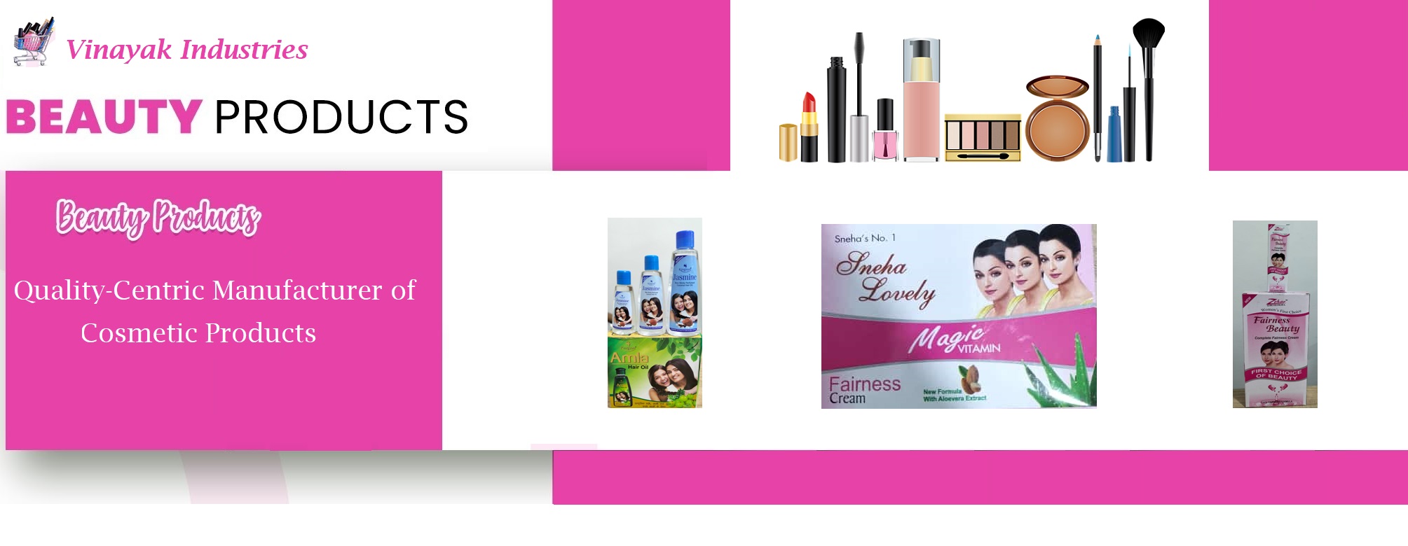 We, Vinayak Industries are popular as a quality-centric manufacturer of cosmetic products. It is a dependable source for healthcare institutions to obtain supreme healthcare products such as Hair Oil, Talcum Powder, Face Bleach, Hair Colour, Hair Remover Cream, Face Scrub etc. All our products are made from natural ingredients, which make them skin-friendly. Customers highly prefer our products because of their effectiveness. All our products are reasonably prices which is one of the reasons behind the popularity of our range in markets. We are recognized all over India as a customer-focused manufacturer that keeps the requirements of its clients above personal gains.